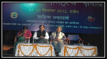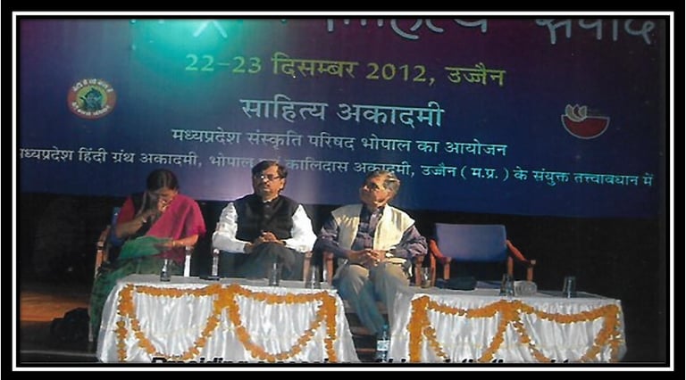 म.प्र. संस्कृति परिषद, हिंदी ग्रंथ अकादमी भोपाल, एवं कालिदास अकादमी उज्जैन के संयुक्त तत्वावधान में आयोजित अंतरराष्ट्रीय साहित्य-संवाद में, ‘भाषा-विमर्श’ सत्र के . अध्यक्ष, मणिमोहन चवरे का उद्बोधन।