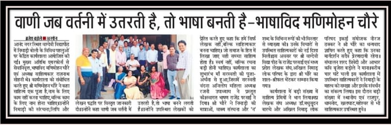 विक्रम वि.वि.उज्जैन में, ग्यारह देशों के साहित्यकारों के अंतरराष्ट्रीय साहित्य-संवाद में, . निमाड़ी भाषाविद मणिमोहन चवरे ने निमाड़ी को, भाषा वैज्ञानिक अध्ययन के आधार पर, . एक समृद्ध लोकभाषा का होना सिद्ध किया।